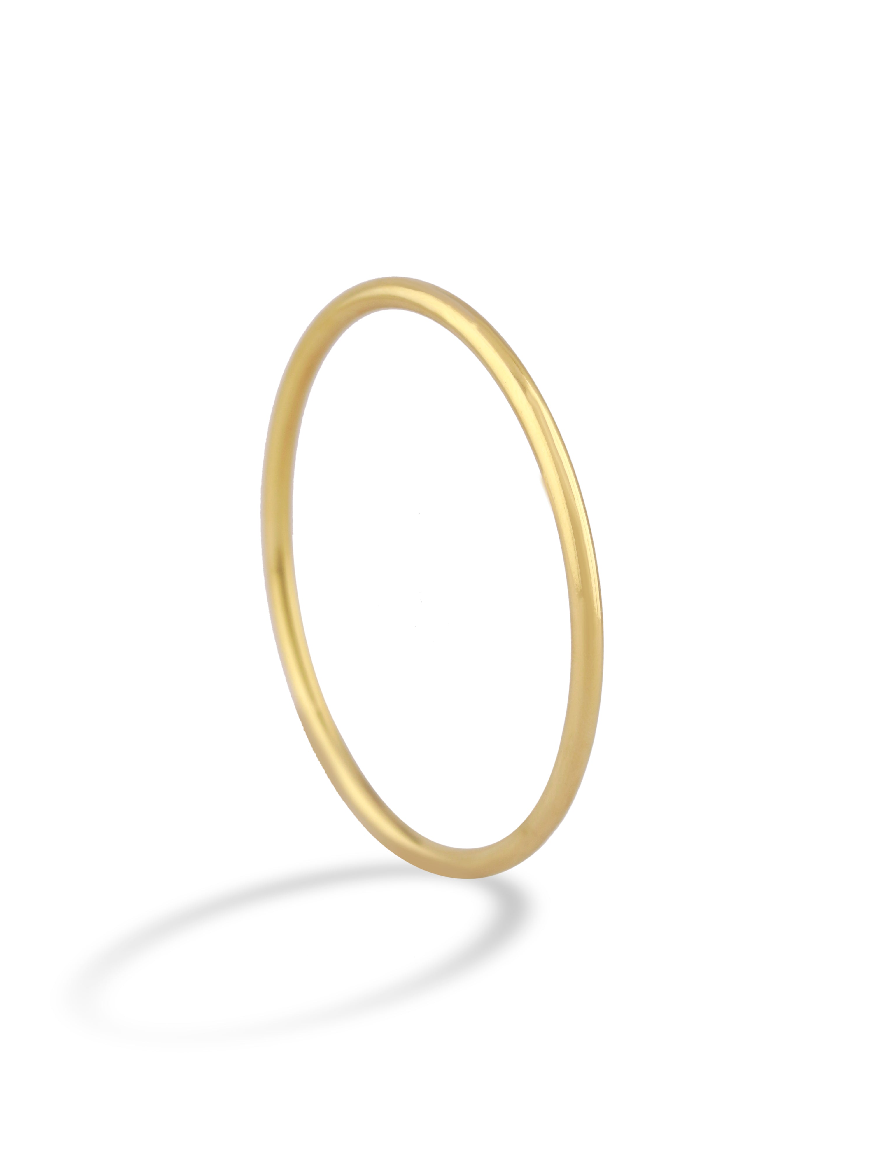 Add a timeless touch to your jewelry collection with this classic gold bangle. It has a sleek, polished finish that shines beautifully. This simple design is perfect for wearing alone or stacking with other bracelets for a modern look.
