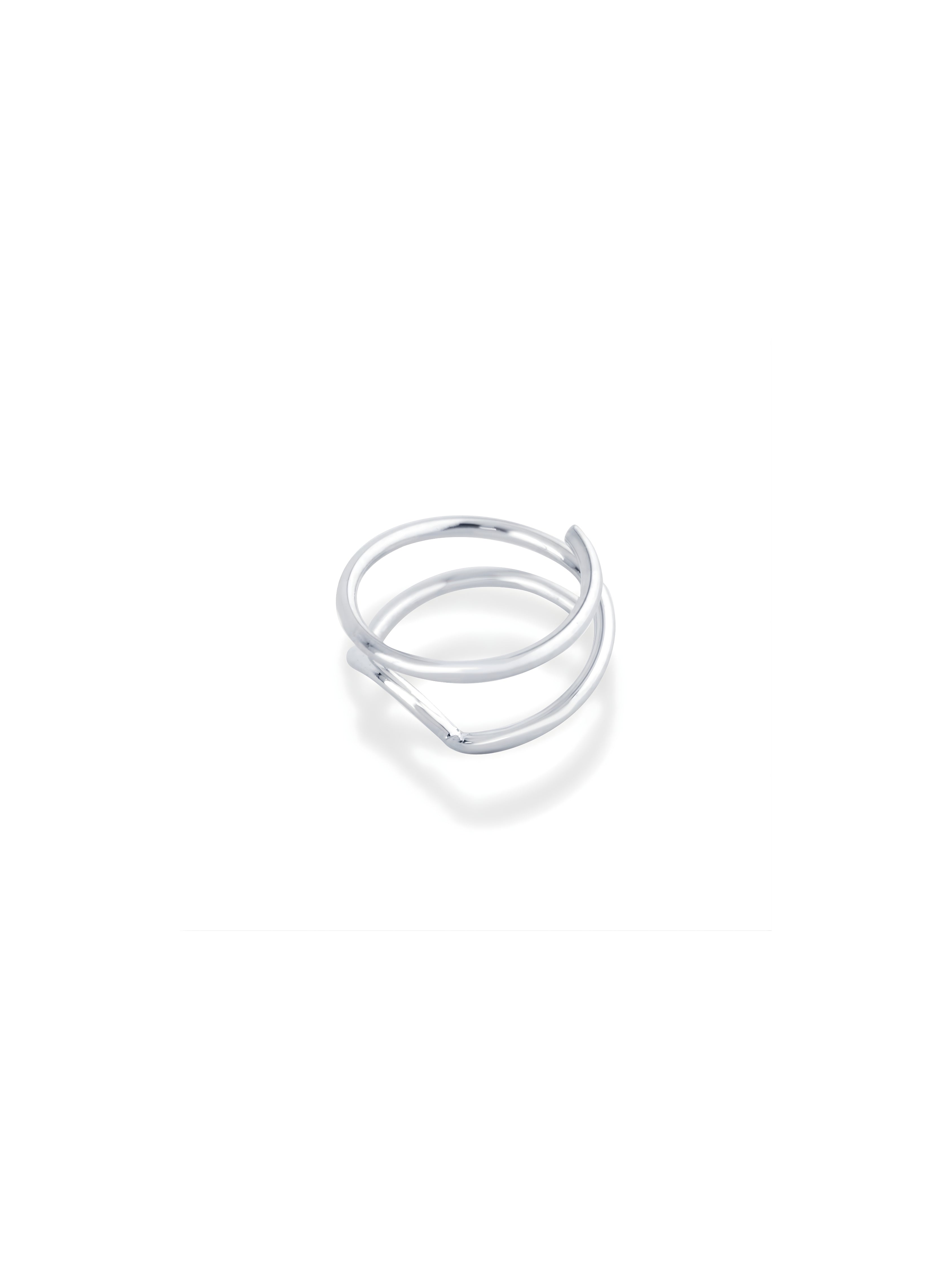 Wavy bands cross over each other for a fluid layered look. Open design fits over your finger tip for a secure hold. Made from strong stainless steel with metallic finish, it looks modern and artistic. Organic shape stands out.