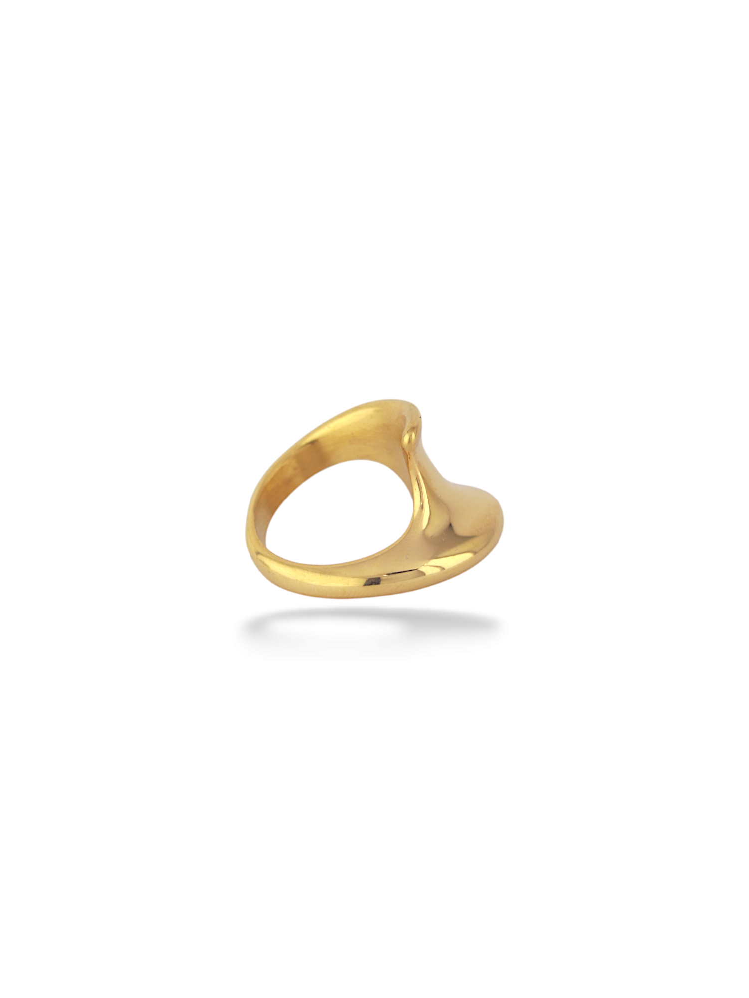 This gold ring has a cool, flowing spiral shape that looks great on your hand. It is smooth, shiny, and very comfortable for daily wear. Its unique wave design adds a modern touch to any outfit you choose.